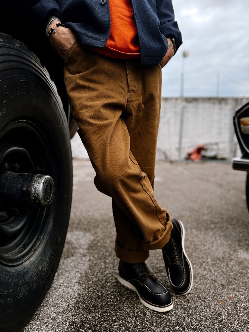 Il protagonista è il pantalone Big Fella, già amato nelle stagioni passate e oggi riproposto in un inedito color cognac: una tonalità calda, contemporanea, che si conferma tra i trend più forti del momento.