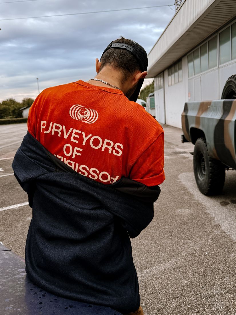 Abbiamo scelto di abbinarlo non ad una classica T-shirt bianca, ma a una Loose Tee color mattone. Una scelta insolita, quasi azzardata, ma che dimostra come i contrasti – se accostati con il giusto equilibrio – possano creare un look sofisticato e moderno.