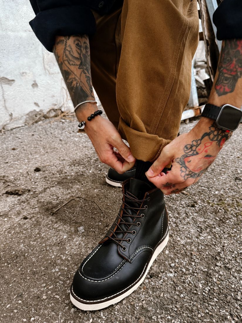 Infine, ai piedi, un grande classico: le Red Wing. Una scarpa che non ha bisogno di presentazioni, simbolo di durevolezza e stile intramontabile, capace di legare insieme l’intero outfit con un tocco deciso e senza tempo.
