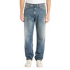 Le rotture localizzate, le baffature e i contrasti sulle zone d’usura sono eseguiti a mano per un aspetto vissuto ma curato nei dettagli. Il design a cinque tasche è completato dal ricamo “R” su una delle tasche posteriori, dall’iconica cucitura "ala di gabbiano" e da un originale motivo impunturato sulla cintura posteriore, che simula l’effetto di un’etichetta staccata.